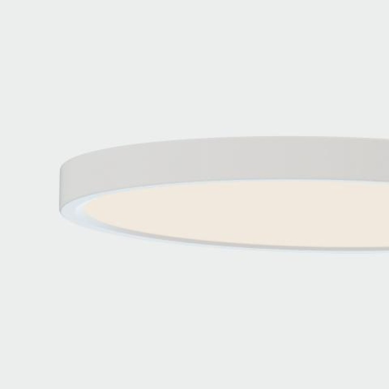 La luminaria Koe presenta una estructura redonda compuesta por metal acabado en color blanco, encaja perfectamente en ambientes modernos.
