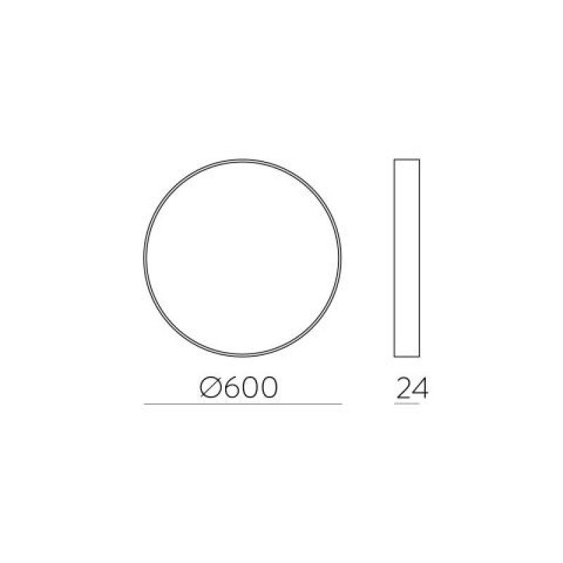 - 60 cm de diámetro con una potencia de 45w, 5500 lúmenes y una temperatura de 3000k-4000k. Sus medidas son Ø600x24mm.