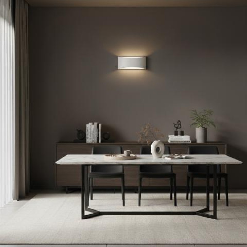 El aplique Dana destaca principalmente porque está hecho de escayola acabada en blanco en su estructura, atributo que lo hace atractivo a la hora de iluminar las distintas zonas del interior de la casa, como el pasillo o la entrada.