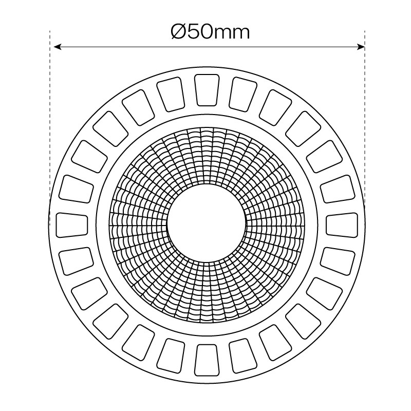 Su ángulo de apertura es de 50º.