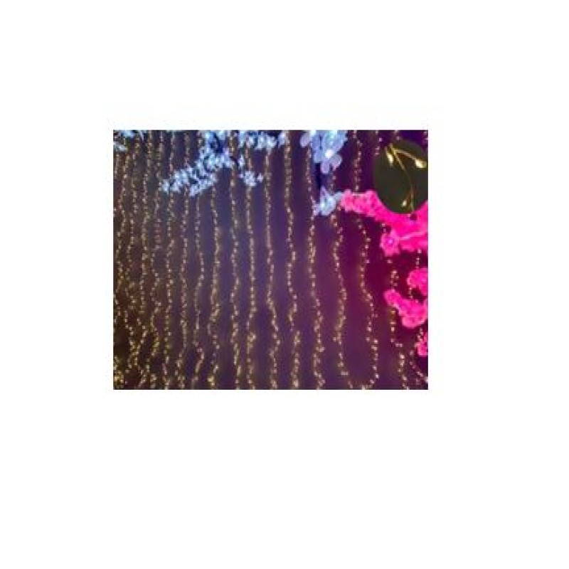 - 1.5x120m. Tiene una potencia de 6w, cuenta con 432 led, 9 caídas y tensión 6v. Caidas a diferentes alturas.