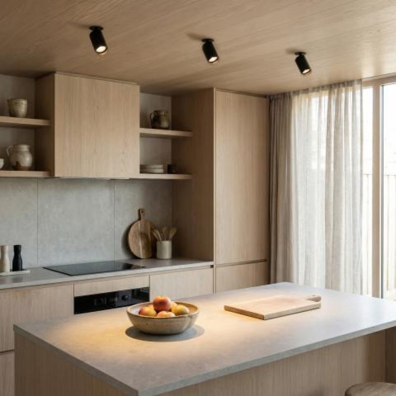 El empotrable de techo Zoom está fabricado en aluminio y policarbonato.