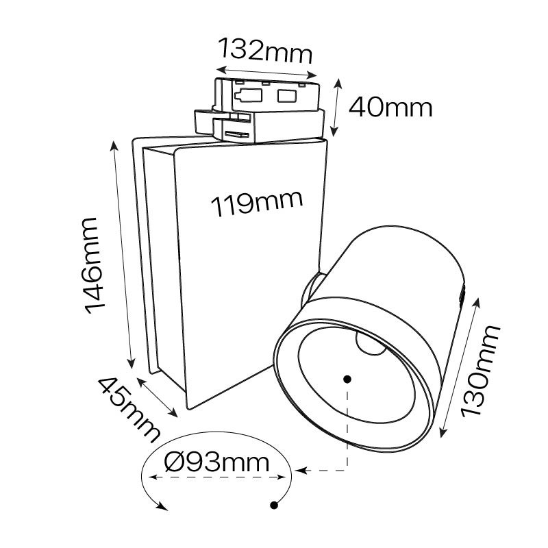 Fabricado en aluminio, con reflector parabólico brillo y proyector de cristal templado.