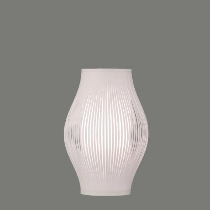 La lámpara de sobremesa Mirta cuenta con un diseño formado por finas tiras que dejan pasar la luz entre ellas, las cuales le dan una apariencia noble y atractiva.