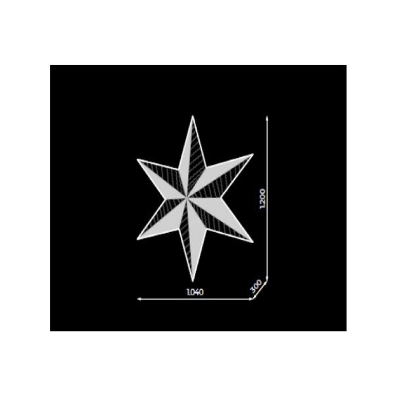 Motivo Star 3D. Cuenta con string plus blanco cálido y PVC NET dorado. Tiene una potencia de 24w. Sus medidas son 1040x300x1200 mm. Su peso es de 6.5 kg. Grado de protección IP65 / Ip44 Plug Cable de alimentación incluido.   Potencia  24w Tensión 230v  Temperatura  String plus blanco cálido  IP 44 Plug 65 Clase  II Medidas ...