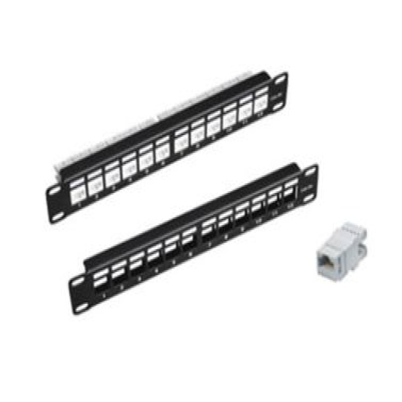 Panel de conexión modular, metalico, 12 puertos, 1U, montaje en bastidor de 254 mm (10 ").