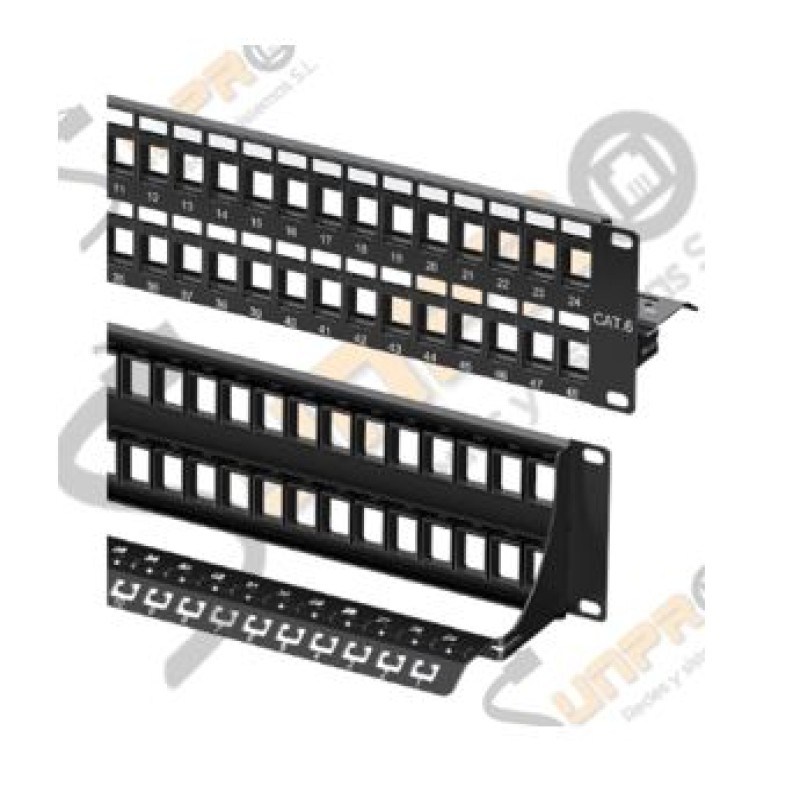 Cuenta con 48 puertos, 2U y 19 pulgadas.