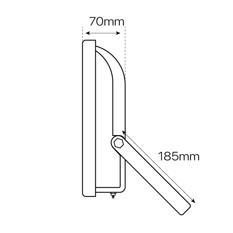 Fabricado en aluminio y cristal templado, rematado con un reflector de alumino y un disipador del calor por lamas en la parte posterior.