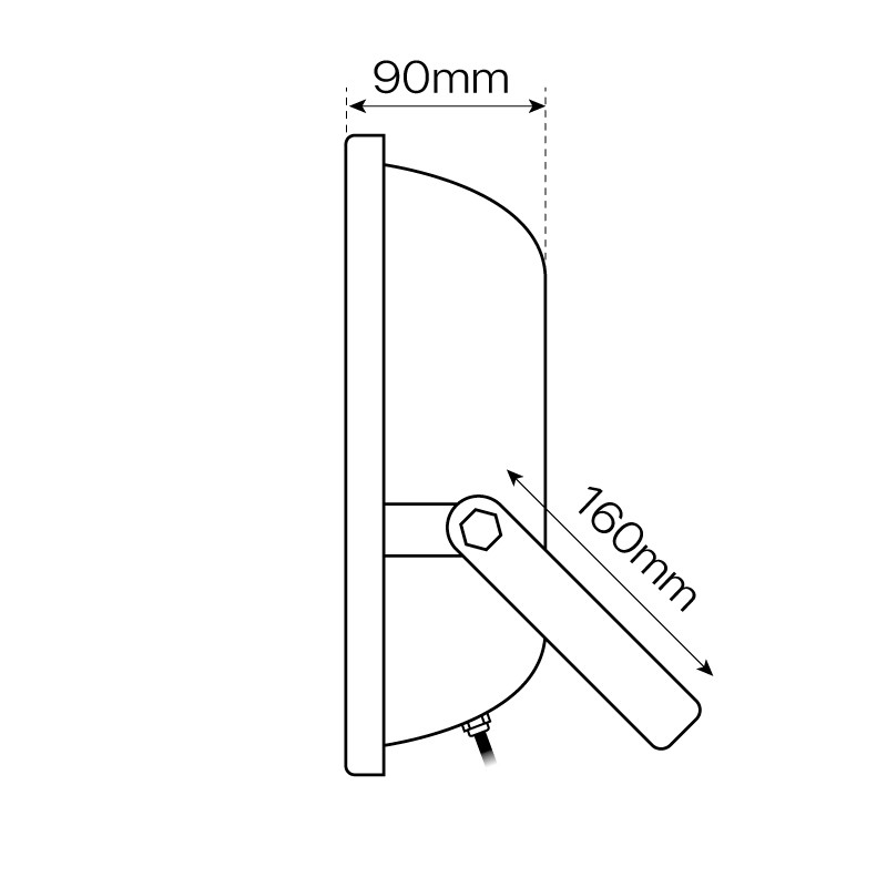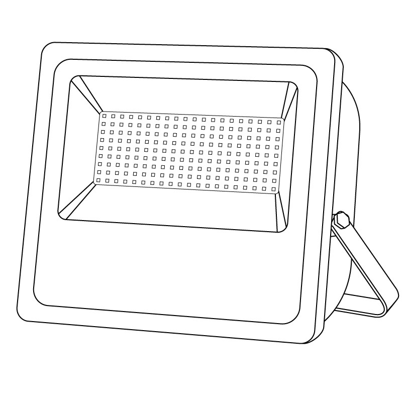 Fabricado en aluminio y cristal templado, rematado con un reflector de aluminio y un disipador de calor por lamas en la parte posterior.