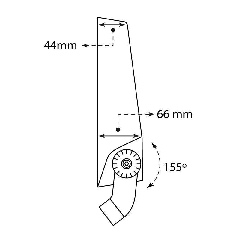 Tiene un ángulo de apertura de 90º y un ángulo de inclinación de 155º.