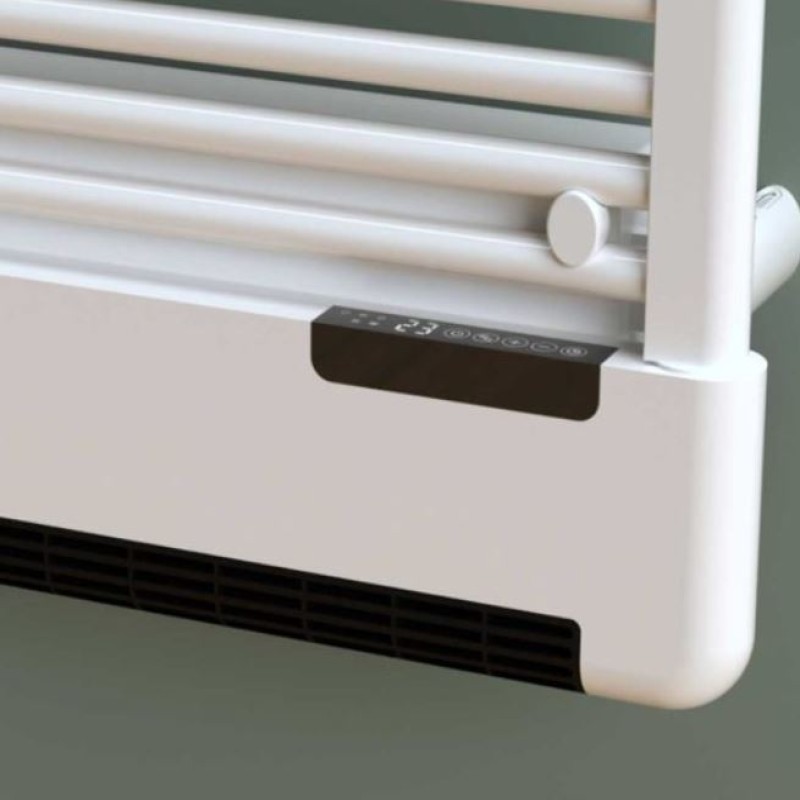 El toallero Milano combina secatoallas y calefactor con ventilador lo que permite calentar el baño en minutos.