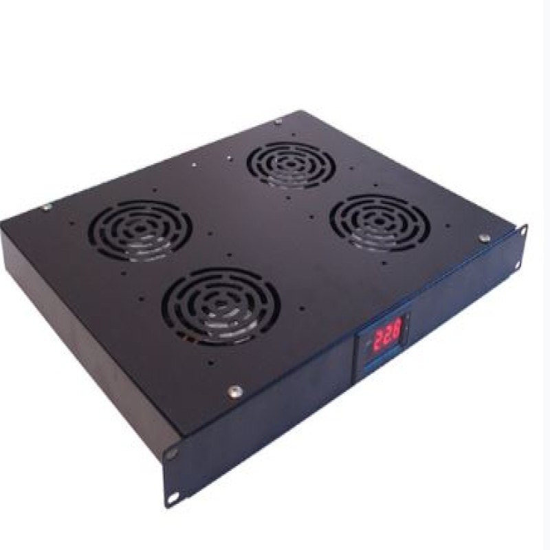 Bandeja de ventilador de 19 "y 1U, 4 ventiladores con un termostato es acta para el montaje en armarios de telecomunicaciones y bastidores de servidores utilizando un kit de montaje estándar en los perfiles verticales de 19". Ocupa 1U de altura.